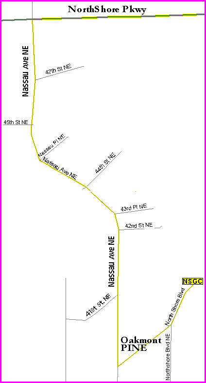 stop sign at 41st. Turn left at the next street (Oakmont) to the bottom of