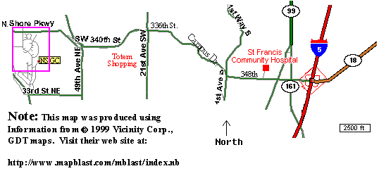 Shopping area. Continue west, the street becomes 340th and winds northwest